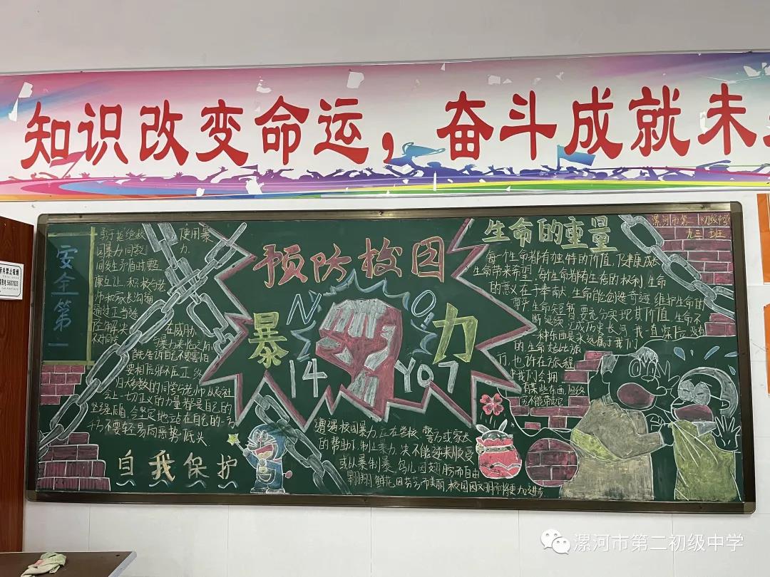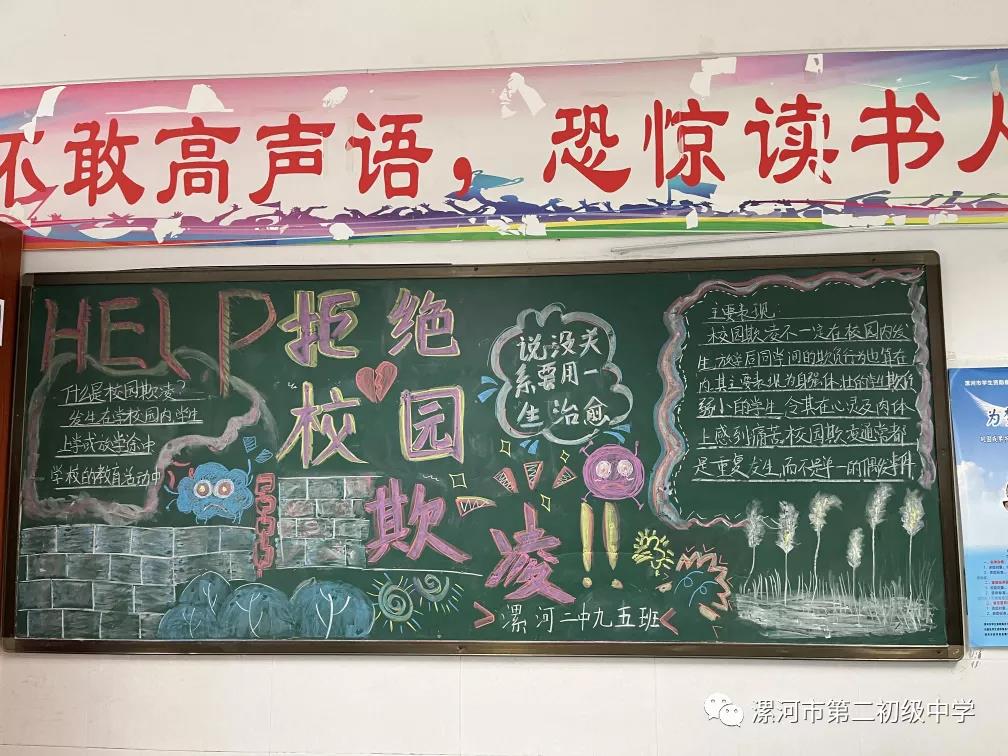 举办以“预防校园欺凌,构建平安校园’”为主题的黑板报比赛。