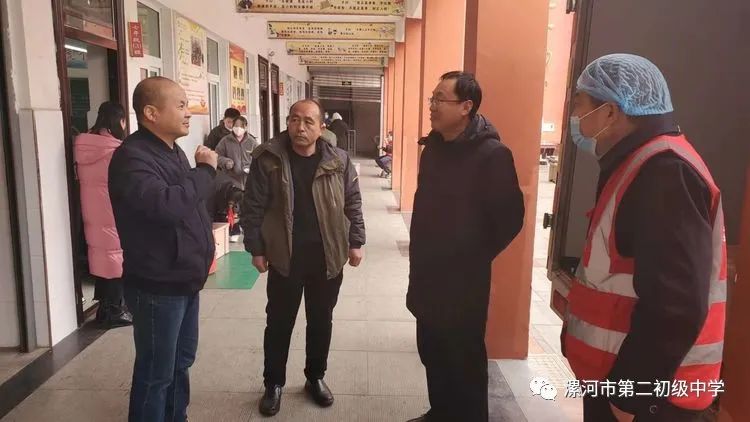 为进一步做好我市学校集中供餐单位食品安全工作,规范食品安全经营行为,保障师生的饮食安全,2022年2月18日中午,市教育局安全科副科长杨继各带领安全科相关人员对我校中午配餐情况进行了督导检查。漯河二中党总支副书记、校长吴金涛,副校长段彦召等陪同检查。