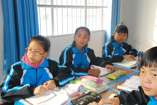 鲁迪(中)在教室认真学习